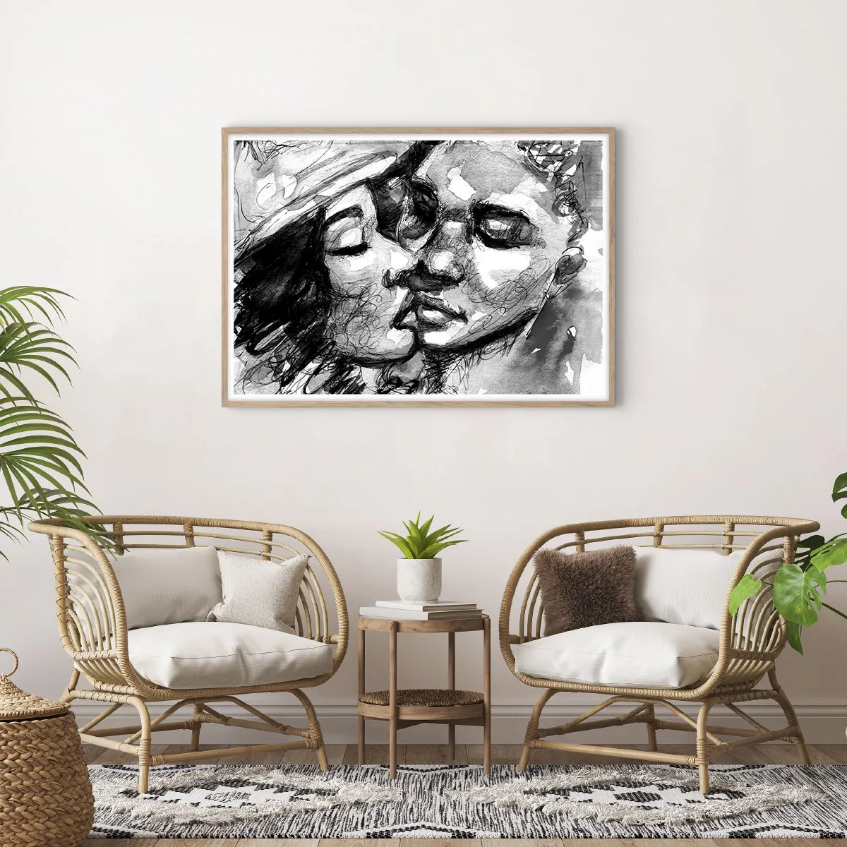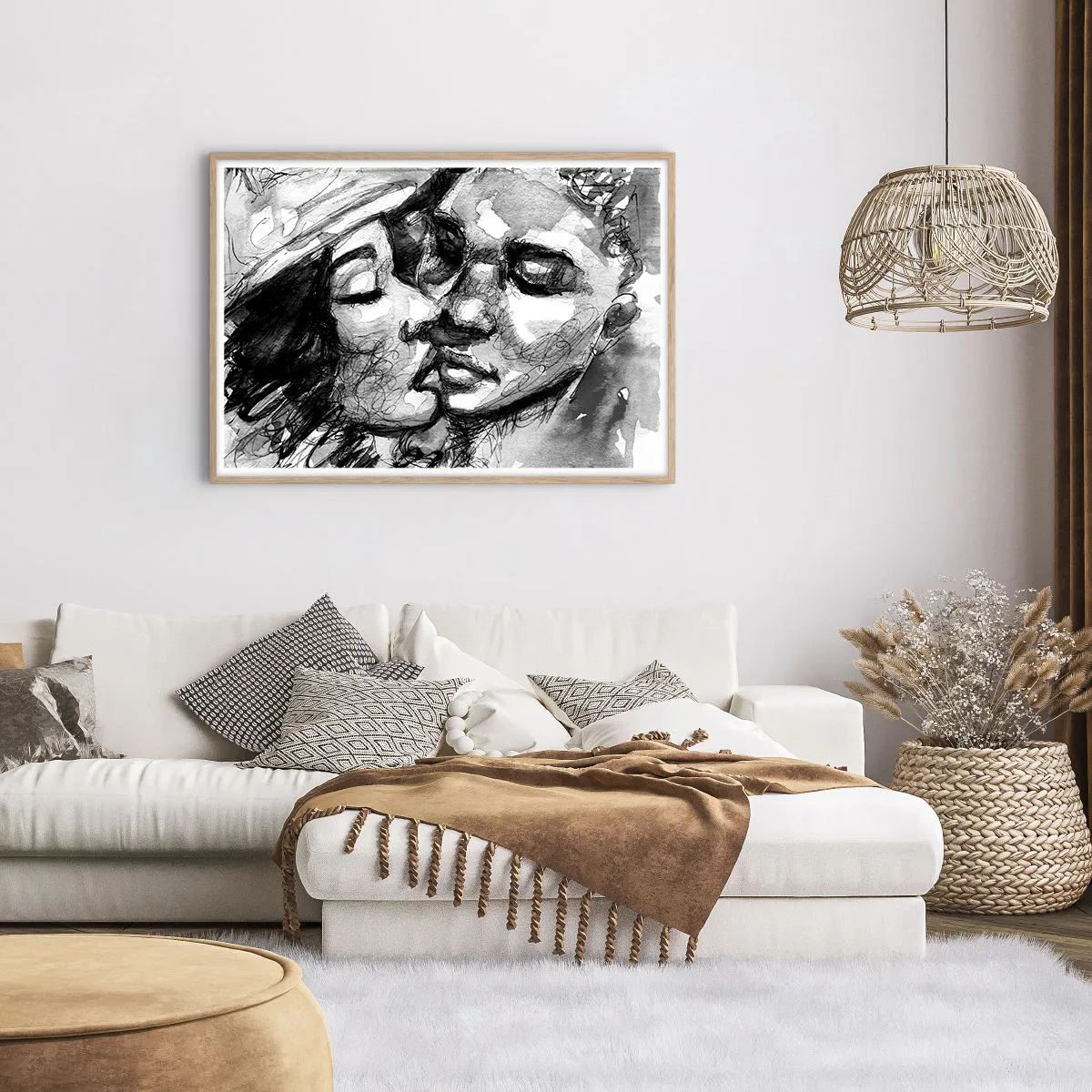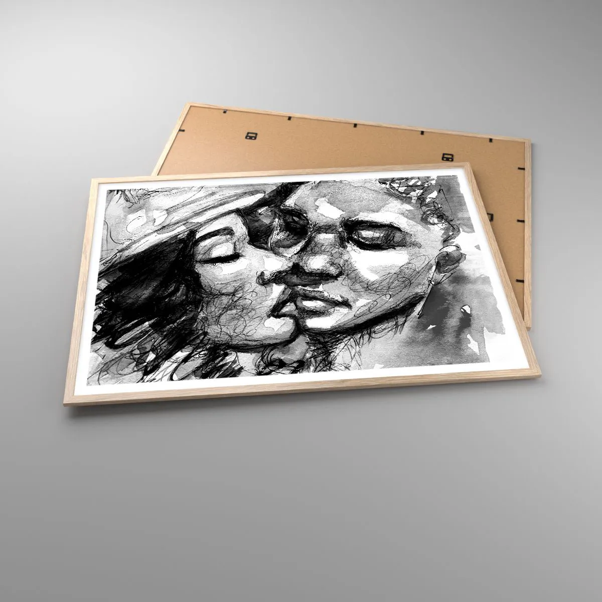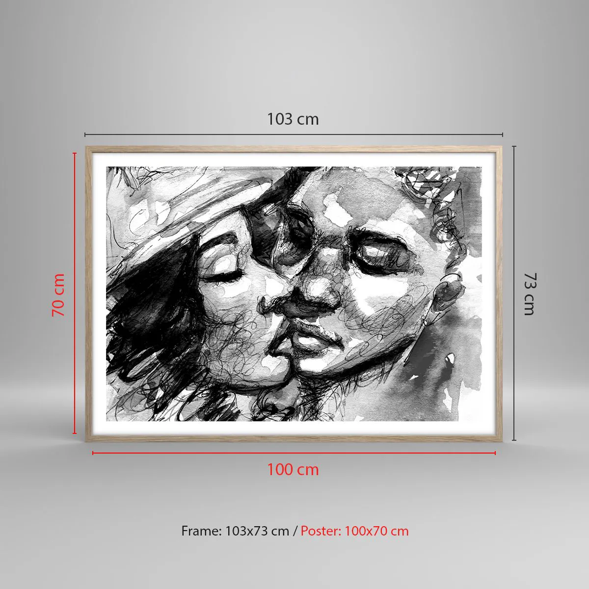 Poster in light oak frame - Tender Moment - 100x70 cm