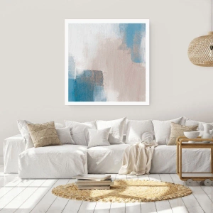 Poster - Pink Abstract with a Blue Curtain - 70x50 cm