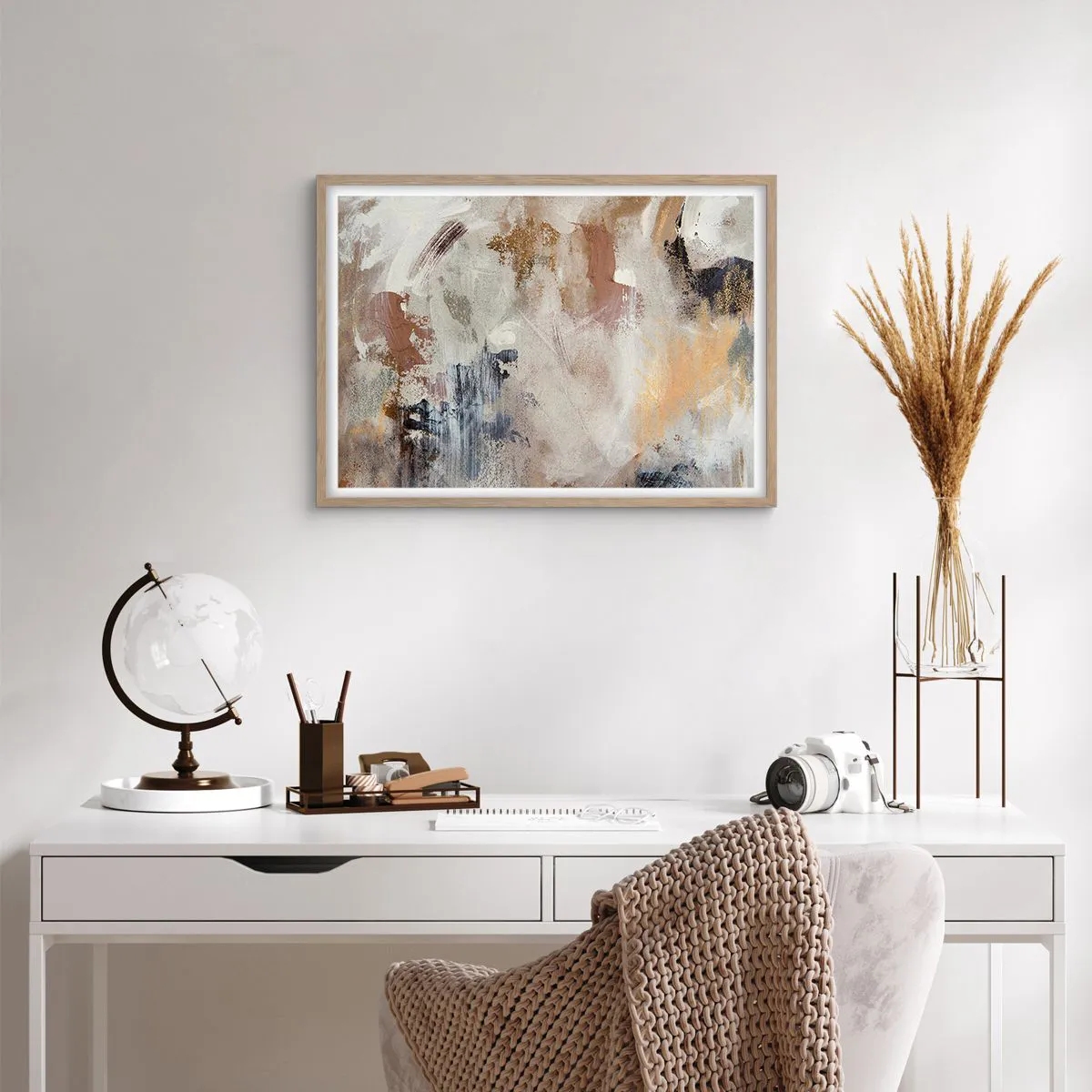 Poster in light oak frame - Foggy Abstract - 70x50 cm