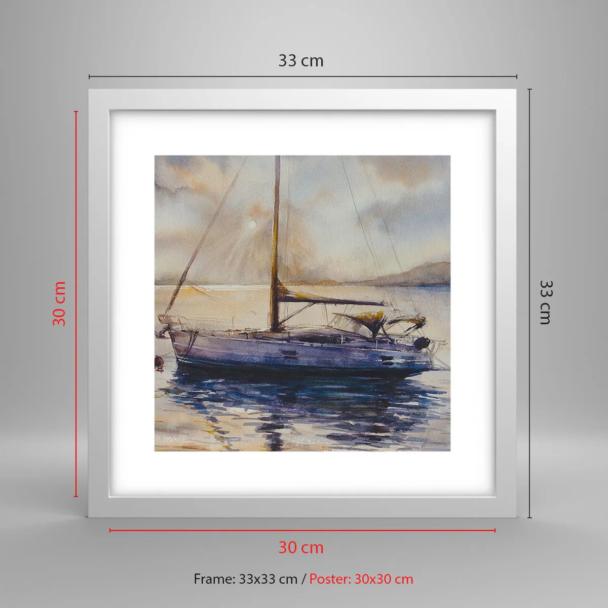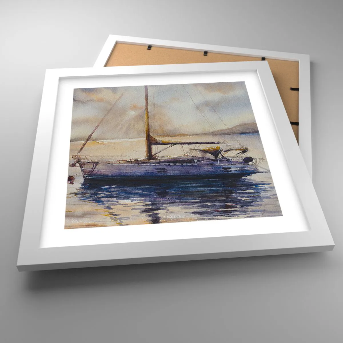 Poster in white frmae - Evening in Harbour - 30x30 cm
