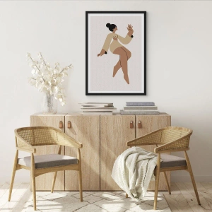 - The poster depicts a stylized figure of a woman in motion, presented in a minimalist form. The subtle color palette and simple lines give the composition a modern and elegant character. A black frame is included.