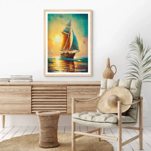 Poster in light oak frame - Under Full Sails - 30x40 cm
