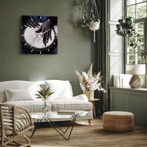 Clock is produced using modern printing technology - this guarantees the preservation of natural colours and high colour saturation. The production of glass clocks is carried out in several stages. A high-quality print and two protective layers are thermally bonded to the glass. We use innovative glass lamination press technology with the vacuum system.