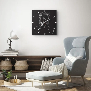 Wall clock - Clock on glass - A white outline of a woman with her finger to her mouth on a black background. - 30x30cm - Beauty Blossoms in Soul - Modern wall decoration for the living room, kitchen, and bedroom ARTTOR