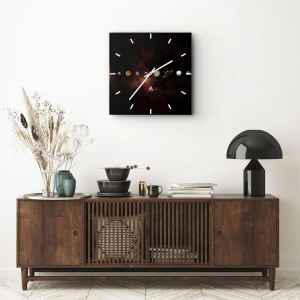 Clock is produced using modern printing technology - this guarantees the preservation of natural colours and high colour saturation. The production of glass clocks is carried out in several stages. A high-quality print and two protective layers are thermally bonded to the glass. We use innovative glass lamination press technology with the vacuum system.
