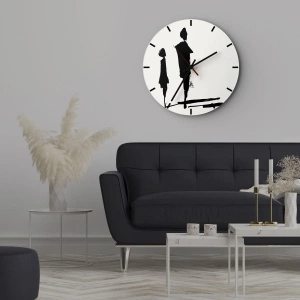 Wall clock "Definitely together?" is a visual story about closeness, distance, and understatement. Two black silhouettes of figures stand out against the white dial – sketchy, simplified, as if captured in a moment of pause. The motif intrigues, leaving room for your own interpretations and emotions. It is a unique decoration with an artistic message.