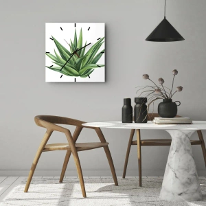 Wall clock - Clock on glass - Green agave on a white background in a botanical style - 30x30cm - Green - Power - Life - Modern wall decoration for the living room, kitchen, and bedroom ARTTOR