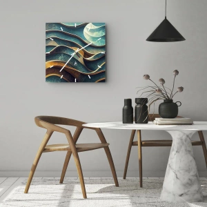 Clock is produced using modern printing technology - this guarantees the preservation of natural colours and high colour saturation. The production of glass clocks is carried out in several stages. A high-quality print and two protective layers are thermally bonded to the glass. We use innovative glass lamination press technology with the vacuum system.