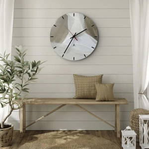 - This clock features a bright, minimalist abstract design in shades of white, beige, and gray. The composition brings tranquility, subtlety, and modern harmony to the interior.