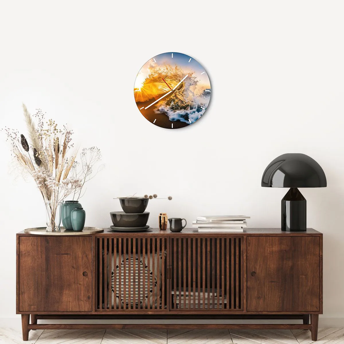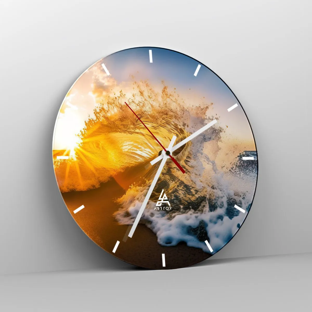 Wall clock - Clock on glass - Playing with Sand - 40x40 cm