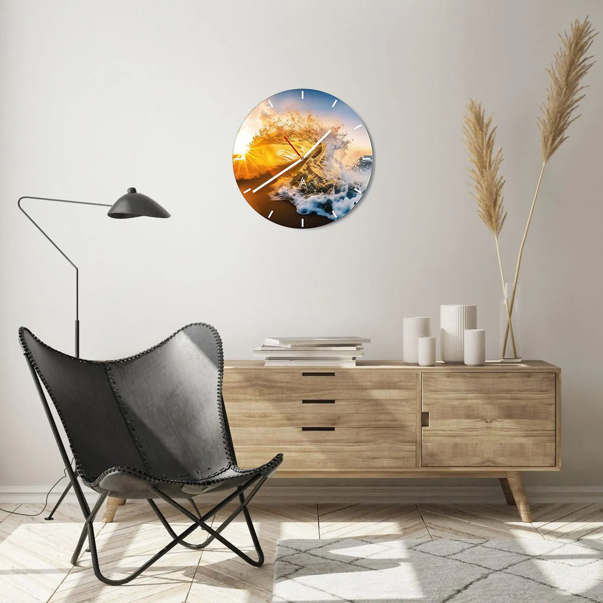 Clock is produced using modern printing technology - this guarantees the preservation of natural colours and high colour saturation. The production of glass clocks is carried out in several stages. A high-quality print and two protective layers are thermally bonded to the glass. We use innovative glass lamination press technology with the vacuum system.