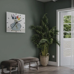 Wall clock - Clock on glass - Decorative artwork with a vase and dry flowers - 30x30cm - As Quiet as Poppies - Modern wall decoration for the living room, kitchen, and bedroom ARTTOR