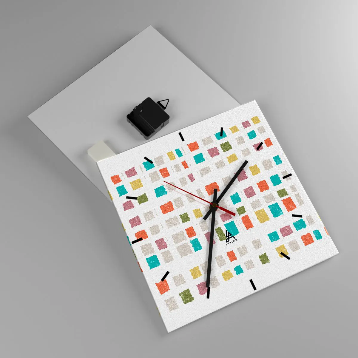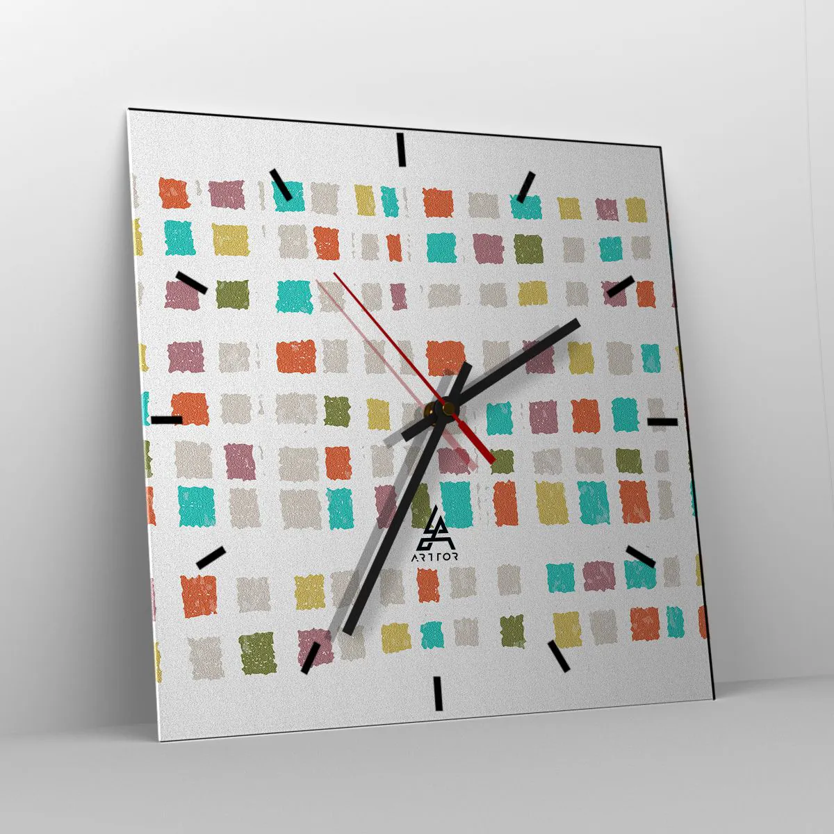 Clock is produced using modern printing technology - this guarantees the preservation of natural colours and high colour saturation. The production of glass clocks is carried out in several stages. A high-quality print and two protective layers are thermally bonded to the glass. We use innovative glass lamination press technology with the vacuum system.