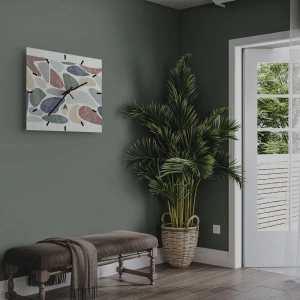 Wall clock - Clock on glass - Colorful organic forms on a light background - 30x30cm - Mosaic of Powdered Colours - Modern wall decoration for the living room, kitchen, and bedroom ARTTOR