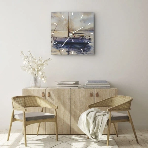 Wall clock - Clock on glass - Evening in Harbour - 40x40 cm
