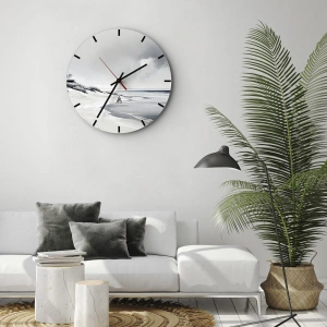 Cool colors, based on shades of gray, black, and delicate blues, make the clock bring peace and contemplation to the interior. Delicate light and shades and blurred shapes emphasize the atmosphere of emptiness and silence.