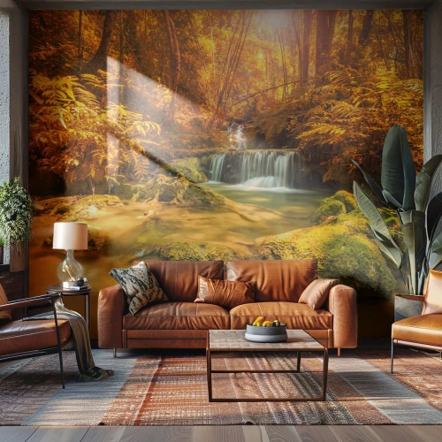 Self-Adhesive Photo Wallpaper Deluxe Sticker - Forest Cascade in Gold - Landscape, Waterfall, Thailand - 250x175 cm