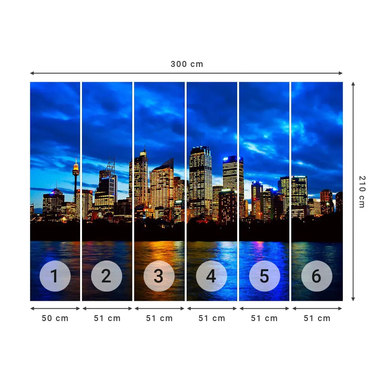 Self-Adhesive Photo Wallpaper Deluxe Sticker - Night of Lights and Colours - City, Sydney, Architecture - 300x210 cm