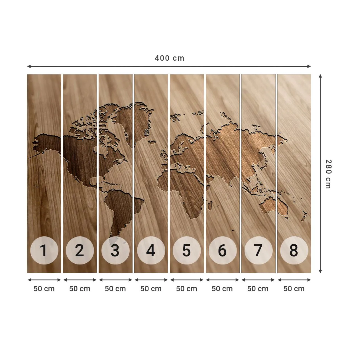 Photo Wallpaper Premium Canvas - World on a Table - World map, Wood, Continents - 400x280 cm