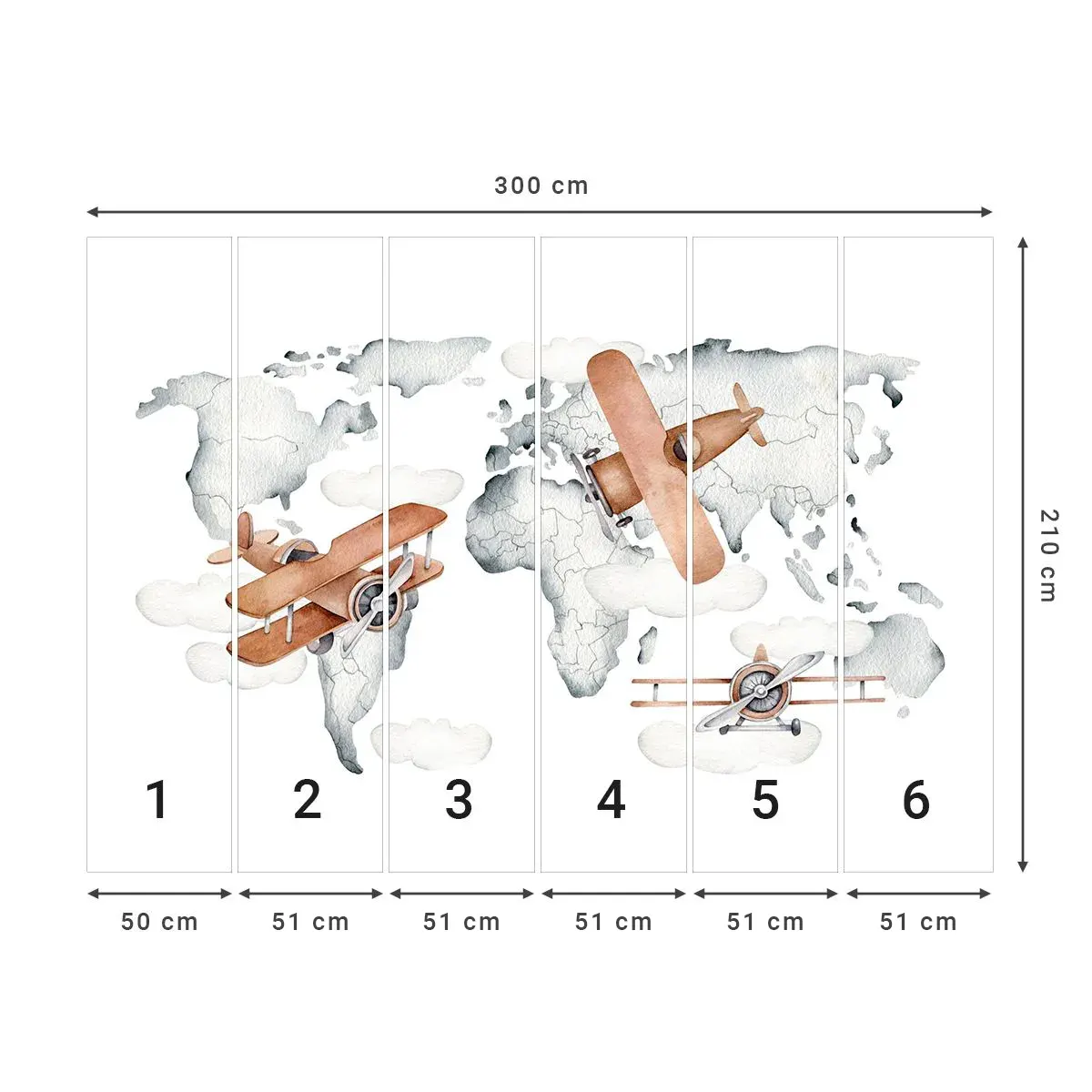 Self-Adhesive Photo Wallpaper Deluxe Sticker - In a Pioneering Spirit - World map, Airplanes, Children's - 300x210 cm