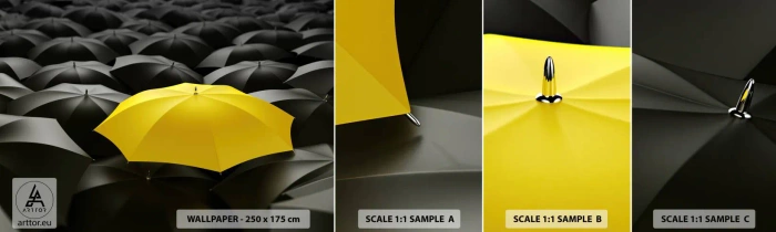 Photo Wallpaper Sample Standard Eco - Goodbye Sadness - Yellow Umbrellas, Graphics, Concept - 100x30 cm