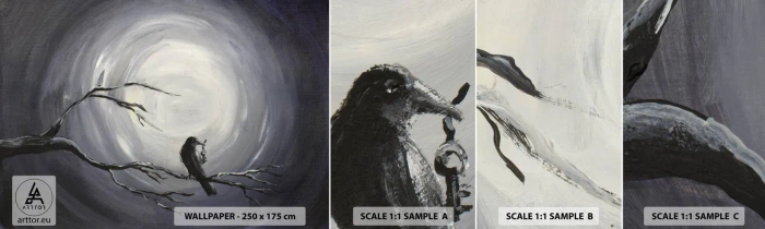 Photo Wallpaper Sample Standard Eco - Key to the Secret of the Night - Abstraction, Crow, Bird - 100x30 cm