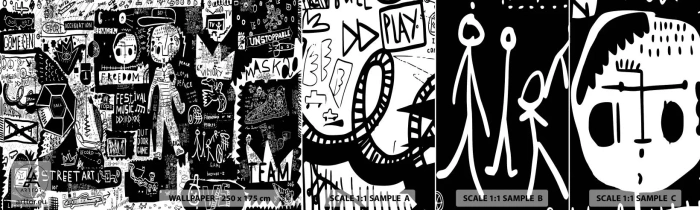 Photo Wallpaper Sample Standard Eco - Rights and Joys of Youth - Graffiti, Piece, Modern Pattern - 100x30 cm