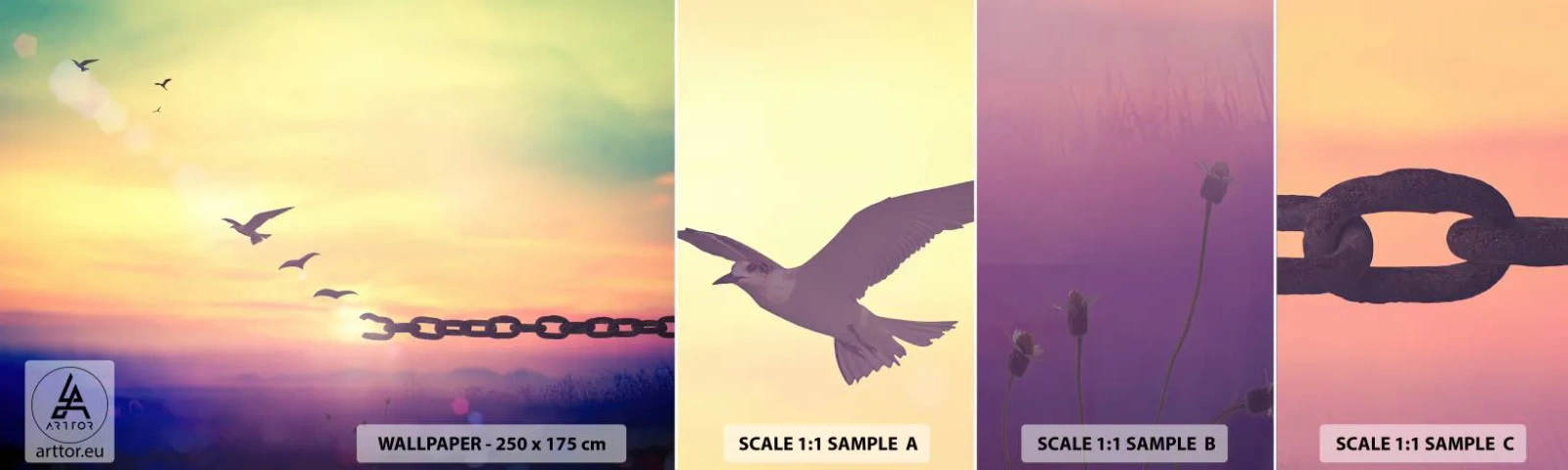 Photo Wallpaper Sample Standard Eco - Victory of Freedom - Abstraction, Birds, Piece - 100x30 cm