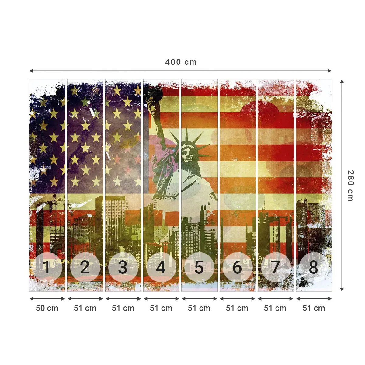 Thanks to our advanced large-format digital printing technology, every detail is precisely reproduced, ensuring stunning, vibrant colors that are sure to impress any observer. The wall mural is resistant to UV rays..