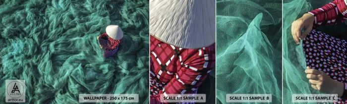 Photo Wallpaper Sample Standard Eco - In the Sea of Nets - Fishing net, Woman, Vietnam - 100x30 cm