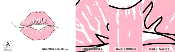 Photo Wallpaper Sample Standard Eco - Ready for a Kiss? - Graphics, Pink lips, Piece - 100x30 cm