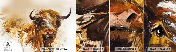 Photo Wallpaper Sample Standard Eco - Pride of a Hunter - Animals, Abstraction, Scottish Buffalo - 100x30 cm