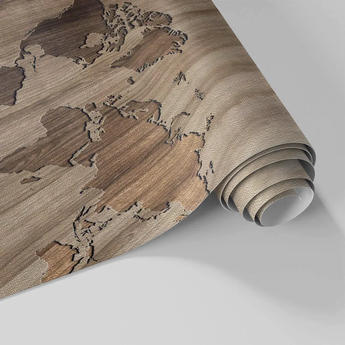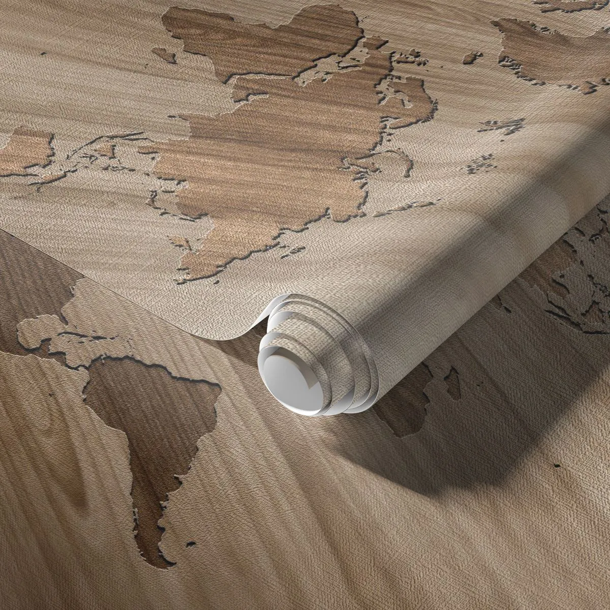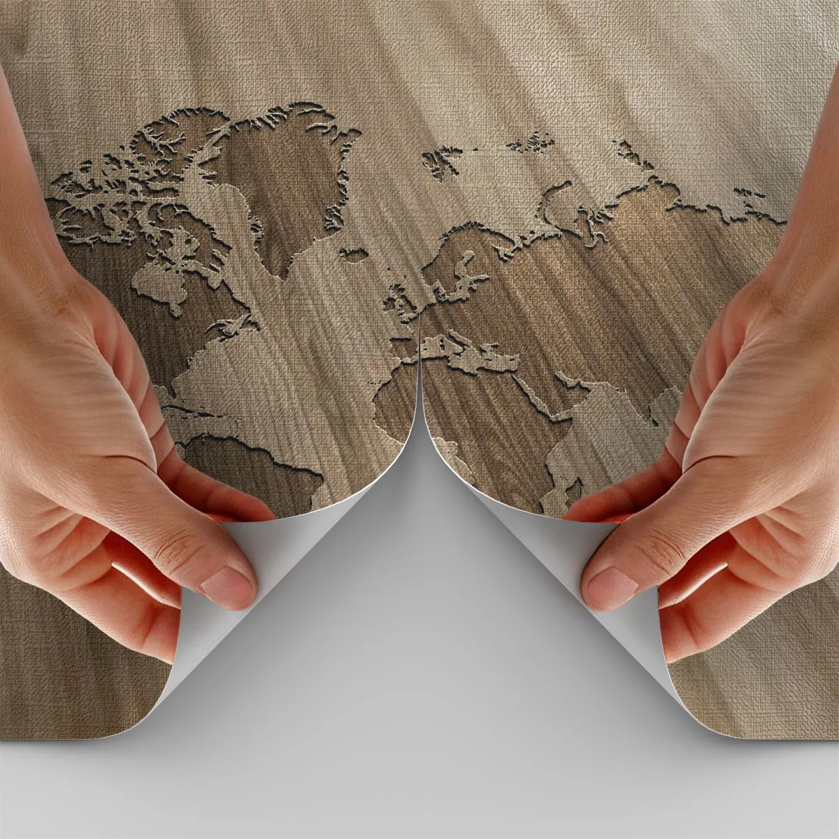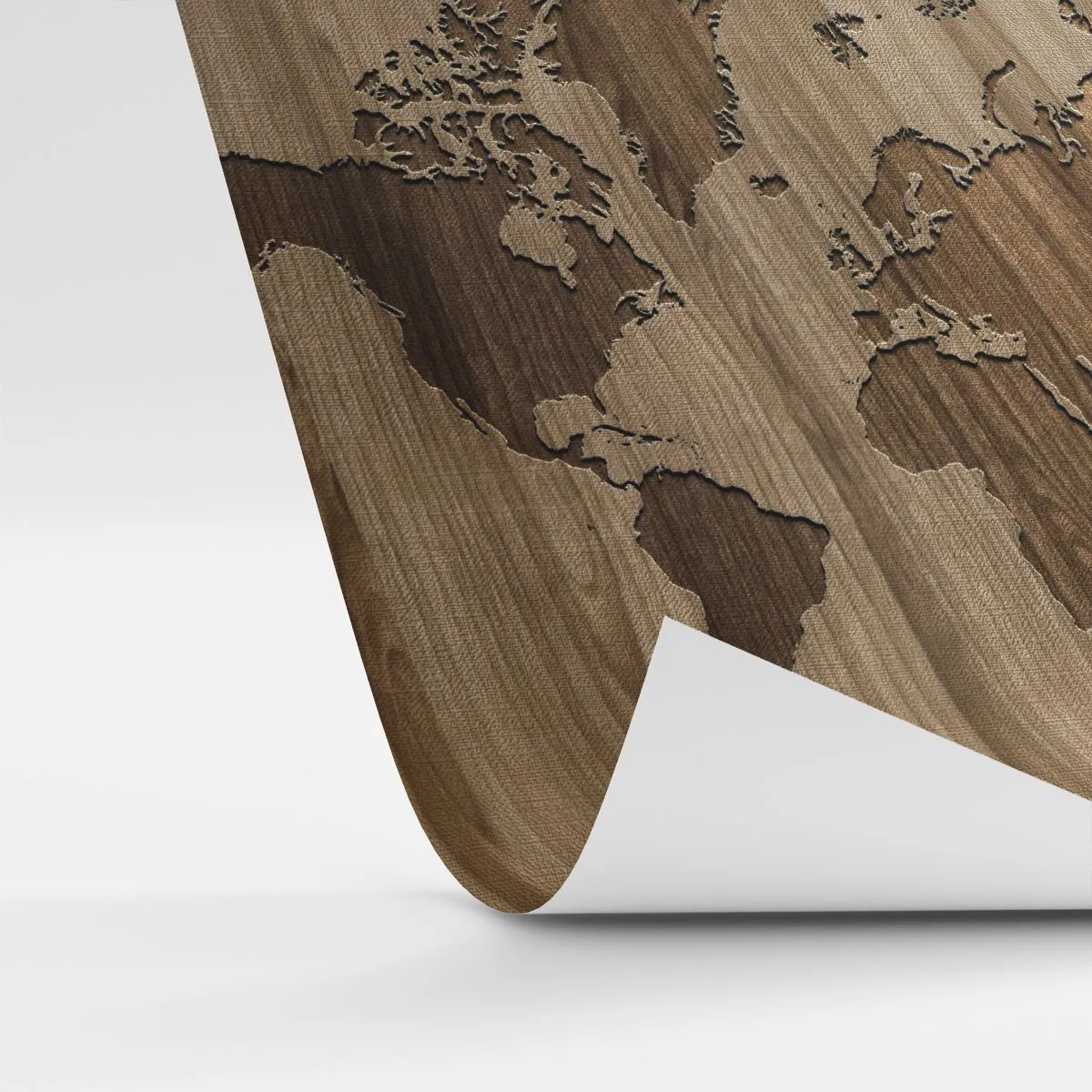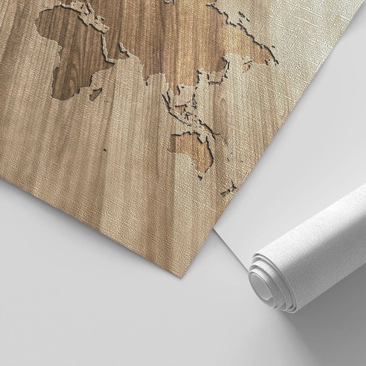 Photo Wallpaper Premium Canvas - World on a Table - World map, Wood, Continents - 500x350 cm
