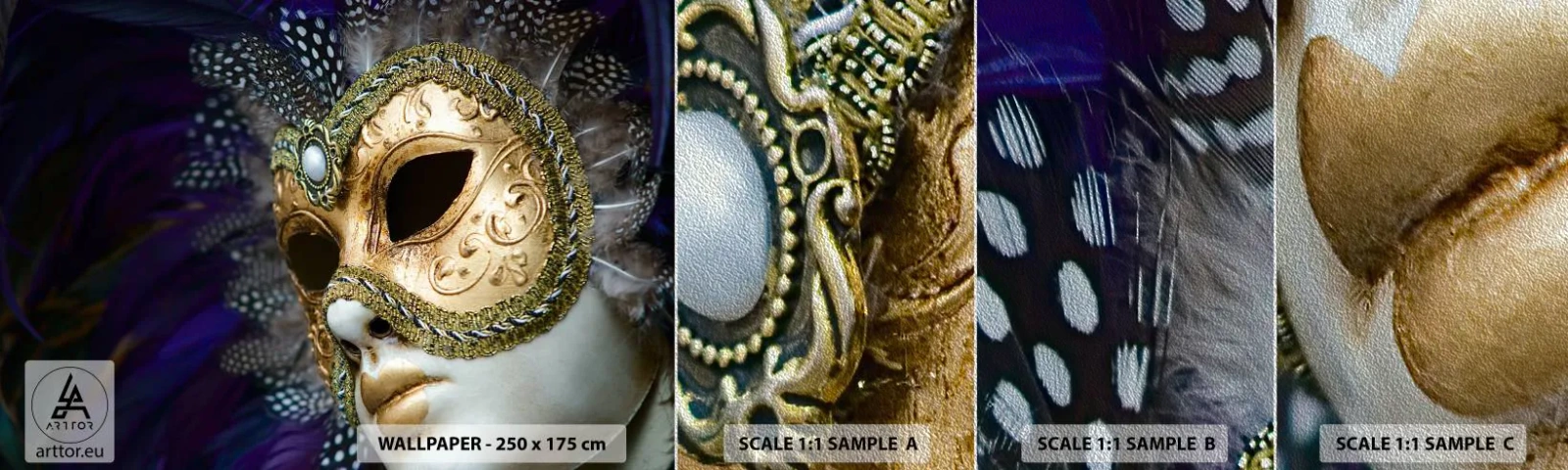 Photo Wallpaper Sample Premium Sand - Venetian Portrait In Gold - Hood, Piece, Venice - 100x30 cm