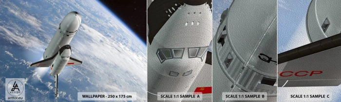 Photo Wallpaper Sample Premium Sand - Space Ascension - Cosmos, Sputnik, A space rocket - 100x30 cm