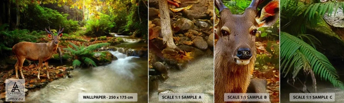 Photo Wallpaper Sample Premium Sand - Wlecome to my World - Landscape, Animals, Deer - 100x30 cm