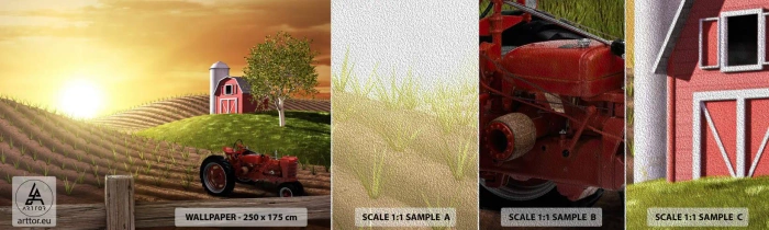 Photo Wallpaper Sample Premium Sand - Farm Straight from a Tale - Farm, Landscape, Tractor - 100x30 cm