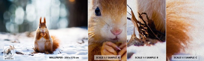 Photo Wallpaper Sample Premium Sand - What Are You Looking at? - Animals, Squirrel, Winter - 100x30 cm