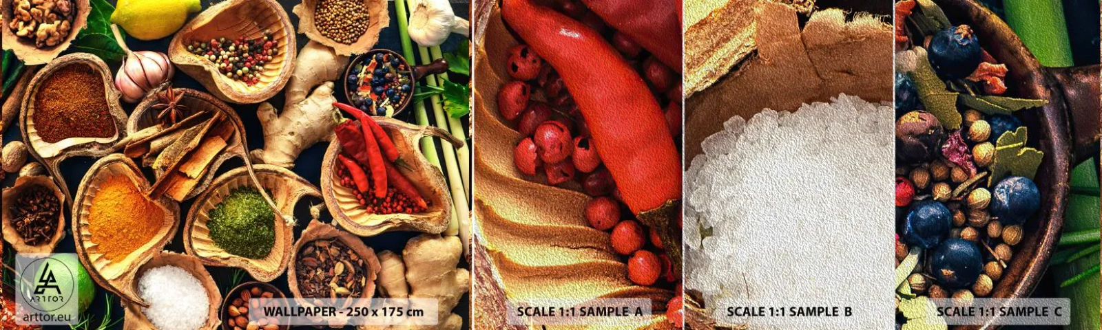 Photo Wallpaper Sample Premium Sand - Take What You Want - Gastronomy, Dried Herbs, Spices - 100x30 cm