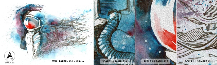 Photo Wallpaper Sample Premium Sand - Alone In Space - Astronaut, Cosmonaut, Abstraction - 100x30 cm