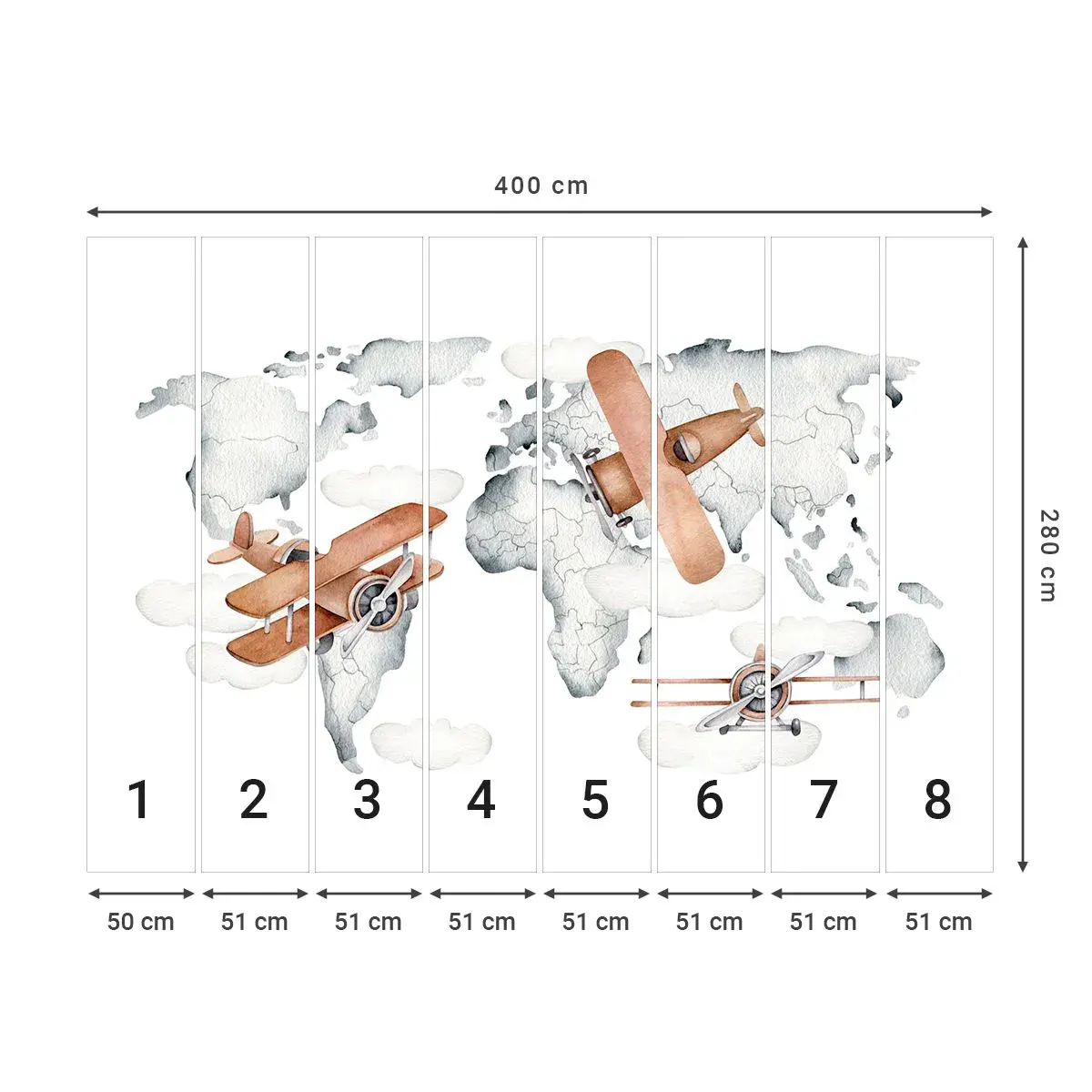 Self-Adhesive Photo Wallpaper Deluxe Sticker - In a Pioneering Spirit - World map, Airplanes, Children's - 400x280 cm