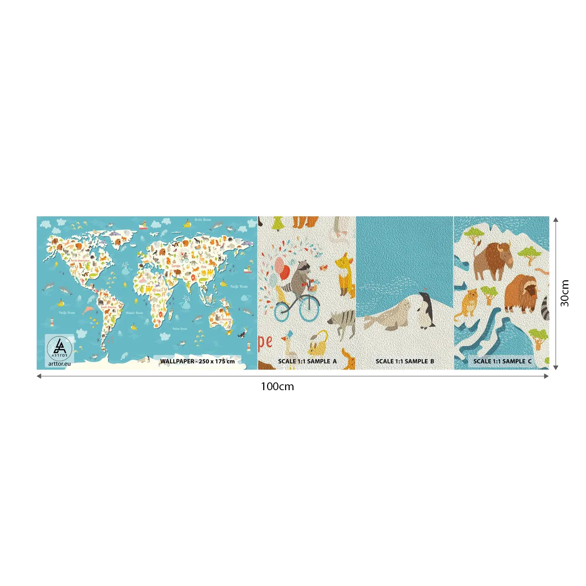 Photo Wallpaper Sample Premium Sand - I Love the Whole World - World map, Animals, For children - 100x30 cm
