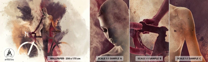 Photo Wallpaper Sample Premium Sand - Marble Sculpted Biker's Soul - Abstraction, Woman, Bicycle - 100x30 cm