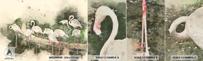 Photo Wallpaper Sample Premium Sand - Exotic Dream - Birds, Flamingos, Nature - 100x30 cm