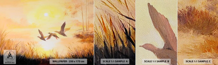 Photo Wallpaper Sample Premium Sand - Beginning of a Distant Journey - Nature, Wild duck, Landscape - 100x30 cm