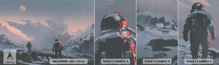 Photo Wallpaper Sample Premium Sand - Under an Unknown Star - Abstraction, Astronaut, Cosmonaut - 100x30 cm