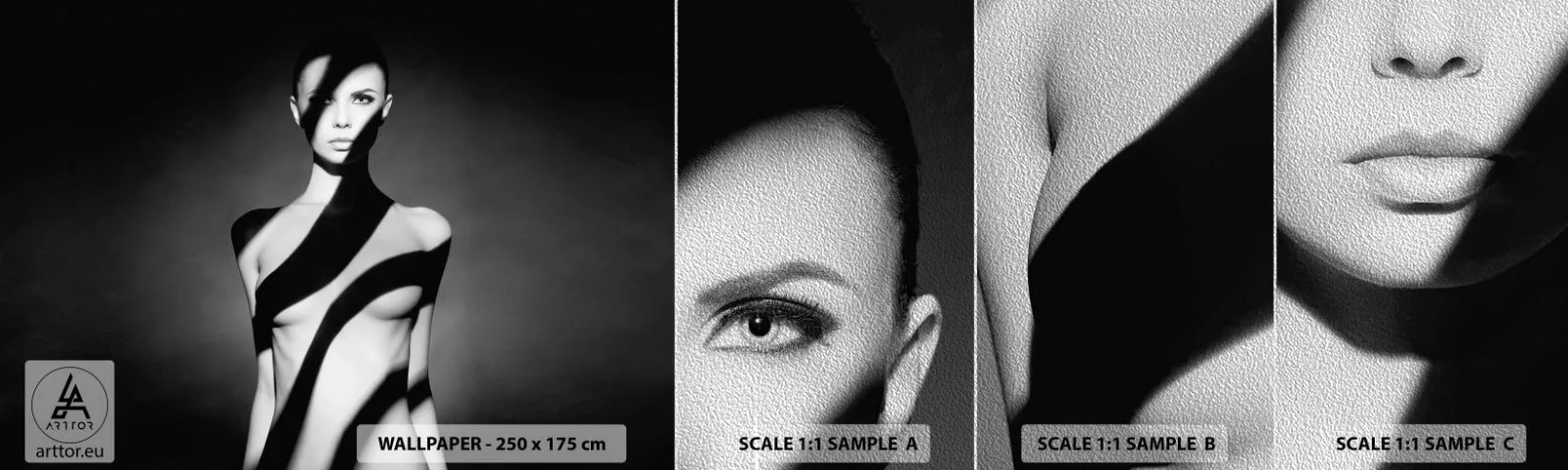 Photo Wallpaper Sample Premium Sand - In the Light and in the Shadow - Woman, Body, Piece - 100x30 cm