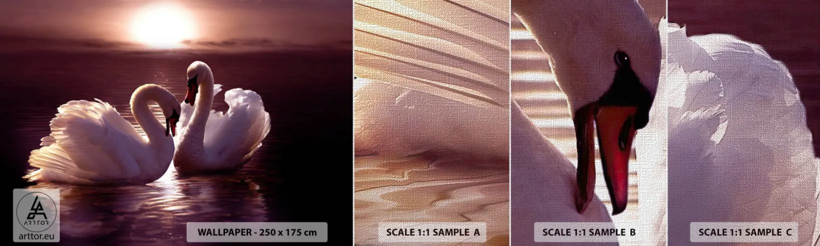 Photo Wallpaper Sample Premium Canvas - Until Death Tears Us Apart - Animals, Landscape, Swans - 100x30 cm