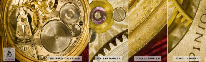 Photo Wallpaper Sample Premium Canvas - Follow the Zeitgeist - Clock, Clock Mechanism, Vintage - 100x30 cm