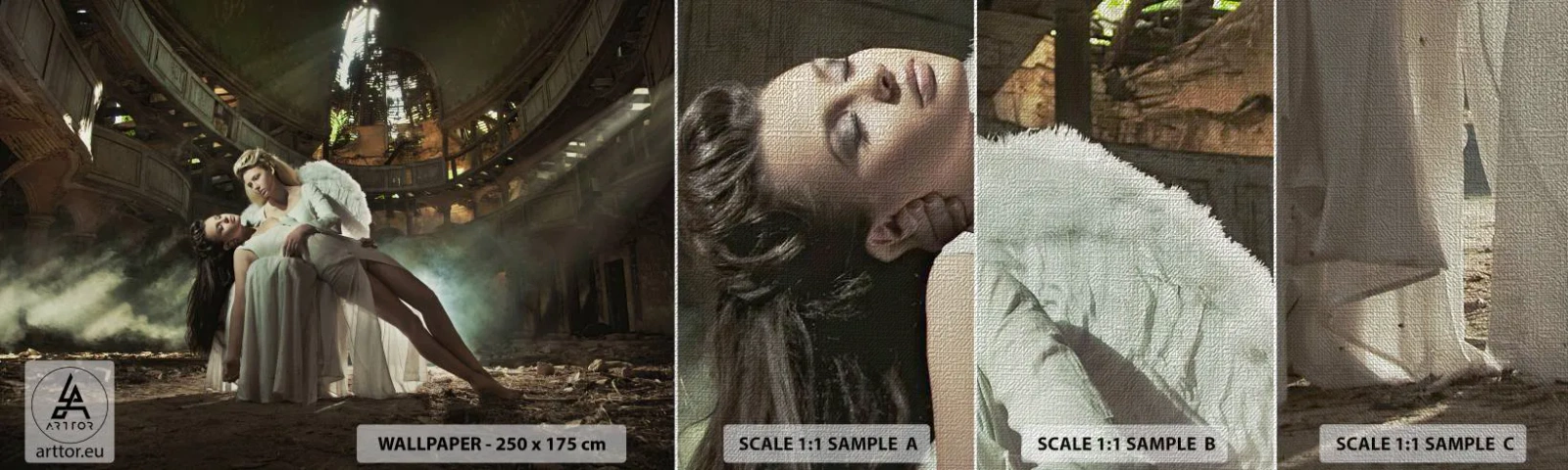 Photo Wallpaper Sample Premium Canvas - Spirit of Old Theatre - Woman, Angel, Piece - 100x30 cm
